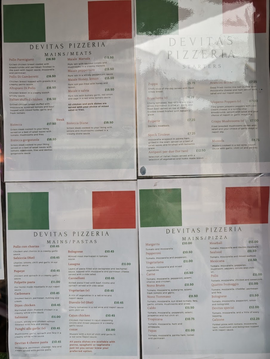 Welcome to DeVitas Pizzeria & Cafe Bar, a hidden gem nestled on 97 High St in Wick, UK. This cozy eatery offers a delightful twist on traditional Italian cuisine, making it the perfect spot for a Sunday afternoon escape. Patrons rave about the spectacular pizzas, expertly crafted to size and flavor, alongside wholesome dishes like their hearty minestrone soup. The atmosphere is warm and inviting, though recent reviews suggest that busy hours may require a reservation for the best experience.